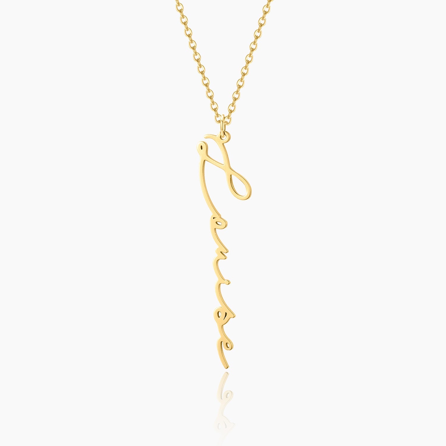 Sleek and elegant, our vertical script Name Necklace creates an effortless signature look that is stunning next to your skin. Personalize your necklace with your name or surprise them with a meaningful gift today.